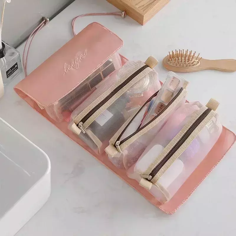 Viajar con estilo y orden está a un solo movimiento: esta cosmetiquera 4 en 1 combina compartimentos plegables, ganchos colgantes y diseño impermeable para que tus esenciales siempre estén al alcance y bien protegidos. ¡Tu aliada en cada aventura!