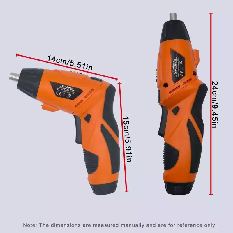 Trabaja sin cables, sin complicaciones: potencia, precisión y autonomía en tu mano. Nuestro destornillador inalámbrico recargable te permite atornillar con facilidad en espacios reducidos, con diseño ergonómico y luz LED integrada. ¡El aliado perfecto para tus reparaciones rápidas y tu creatividad DIY!
